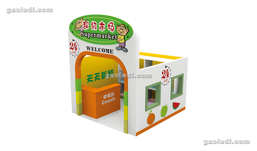 2、造型新颖 幼儿娃娃家以人的生活世界为设计原型,相当于一个微缩的生活环境。在娃娃家中有厨房、客厅、卧室、邮局、医院、美容院、银行等等生活配套设施,这些都是儿童将来步入社会需要接触到的东西。逼真形象的环境情景模拟让儿童在角色扮演和玩乐中认识生活,了解社会。