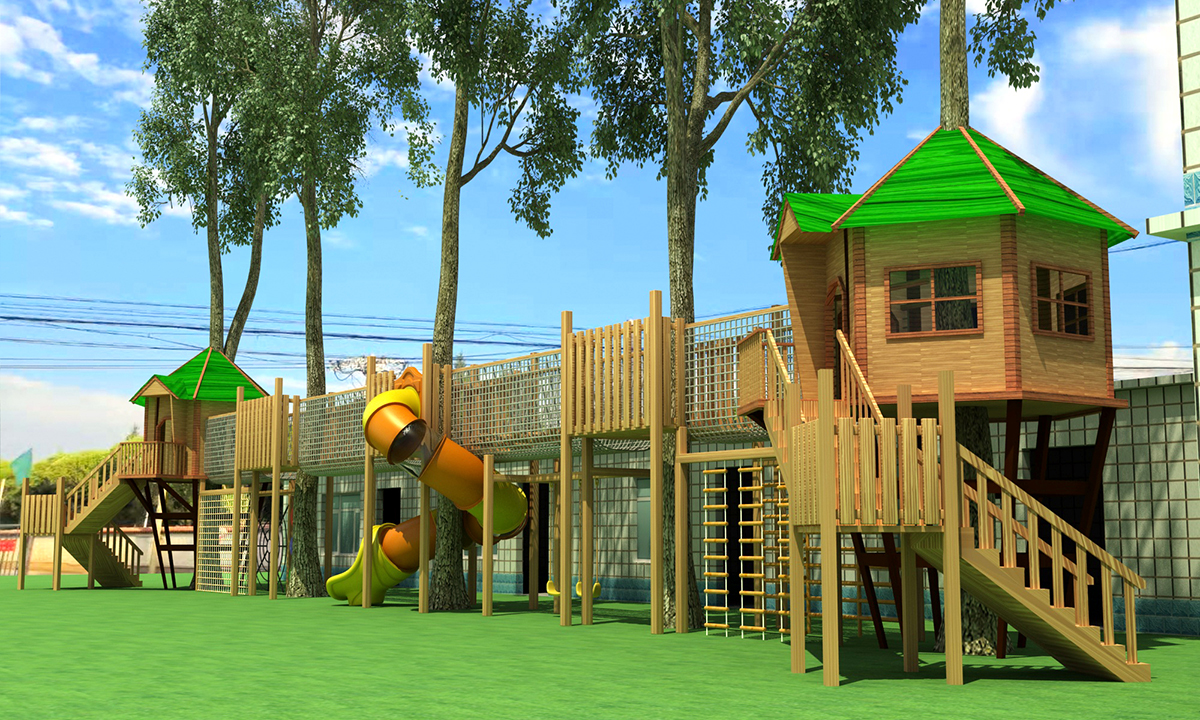 室外木质树屋滑梯