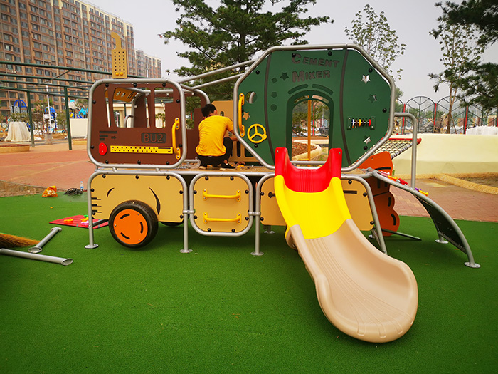 户外击打乐器,可以让孩子获得音乐的体验,增加听力的辨识度。
