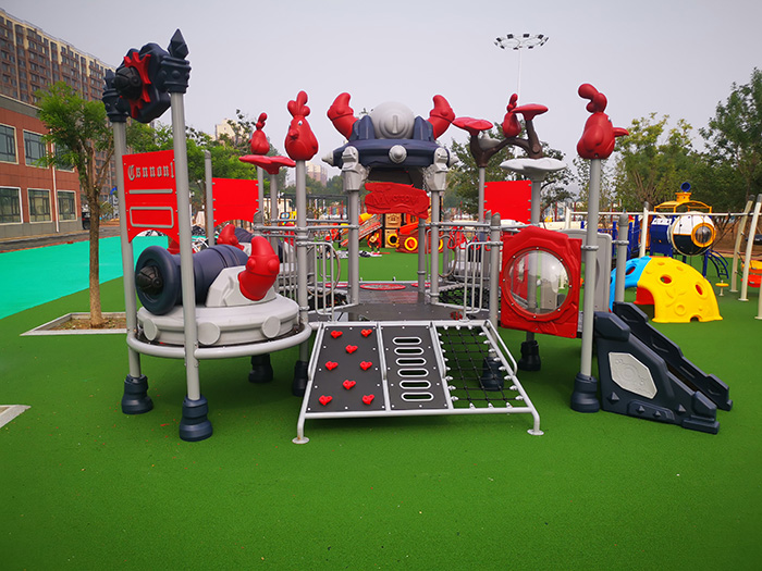 海盗船造型的儿童滑梯,满足男孩子冒险的想法,登上海盗船,我就是强者。