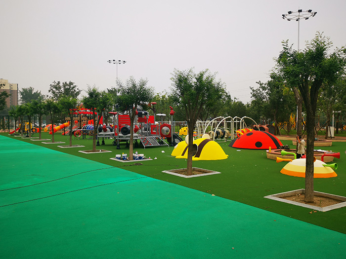 北京白各庄西区幼儿园户外无动力游乐设备儿童乐园,由儿童迷宫、昆虫土邱、微地形、动物造型设备、户外击打乐器、儿童娃娃家、体能拓展、儿童滑梯、攀爬网笼等部分组成,孩子们的钻、爬、跑、跳、攀、摇、滑,都能满足。