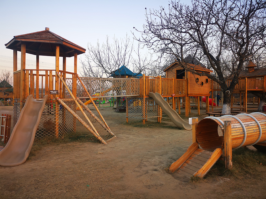 北京绿野仙踪郊野乐园整体造型充满童话色彩,给孩子们的生活增添一丝梦幻色彩。游乐园内的全部设施以木质为主,凸显童话色彩,设有:木屋滑梯,城堡滑梯、动物商店、绳网拓展等设施。