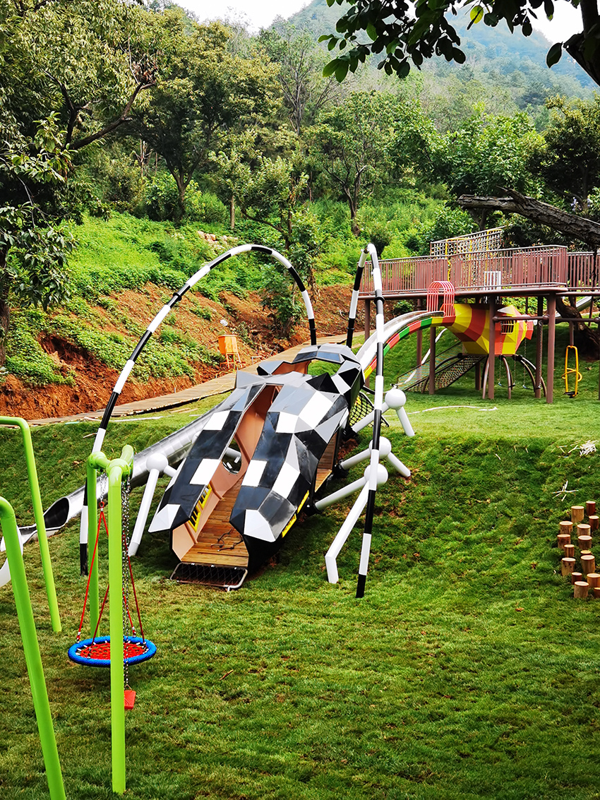 北京平谷嘻谷拾光无动力儿童乐园坐落在平谷大华镇,整座儿童乐园以草坪为底色,结合各种动物造型的无动力游乐设施,就是一座天然的昆虫世界。蚂蚁、瓢虫、天牛、蜻蜓…可爱呆萌极了。AK平台_AK(中国将将科学和 游乐有机融入到自然之中,再结合阶梯式地形建有秋千、滑梯、爬网、滑索、荡桥、蹦床等等让孩子体验到钻、攀、爬、跑、跳、滑等不同的乐趣。